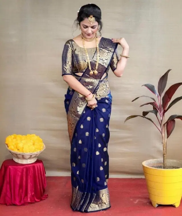 Banarasi Silk Woven Design Saree for Women (Blue, 6.3 m) @ ₹449 - Buy Online at CityMall