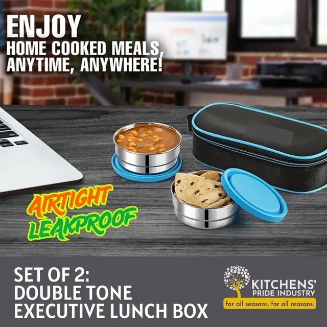 Dual Tone Lunch Box With 2 Steel Containers And 1 Bag - Buy Online at CityMall
