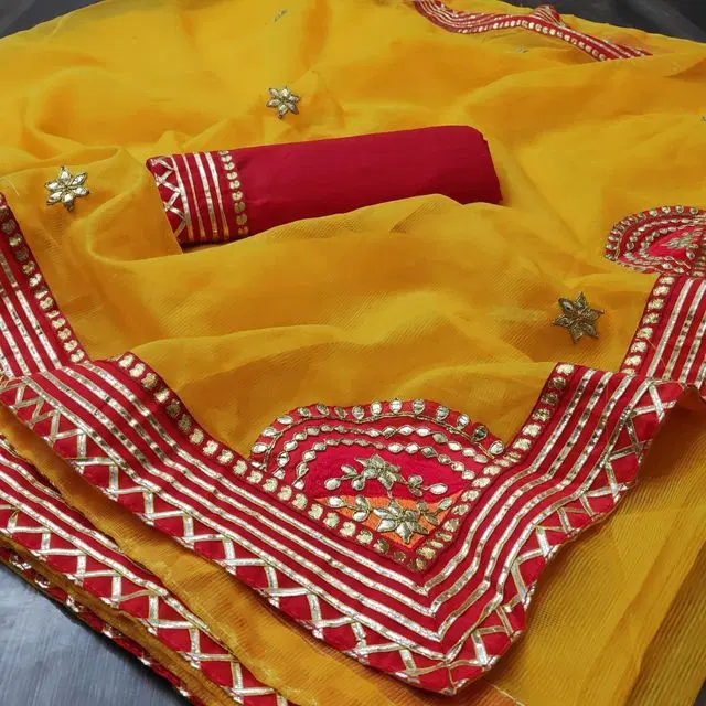 Kanooda Prints Fancy Women Gotapatti Printed Saree (Yellow, 5.5 M) @ ₹479 - Buy Online at CityMall