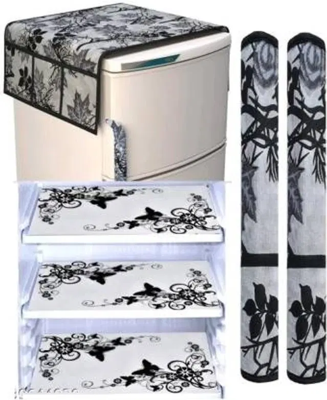 Polyester Printed Top Mat with Side Pockets, 3 Pcs Shelves Mat & 2 Handle Cover for Fridge, Multicolor, 5 Pcs Set - Buy Online at CityMall