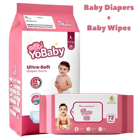 YoBaby Diaper Pants L - 28 Pcs + YoBaby Baby Wipes - 72 Wipes - Buy Online at CityMall