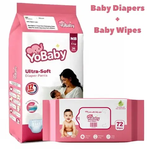 YoBaby Diaper Pants NB (NewBorn) - 36 Pcs + YoBaby Baby Wipes - 72 Wipes - Buy Online at CityMall